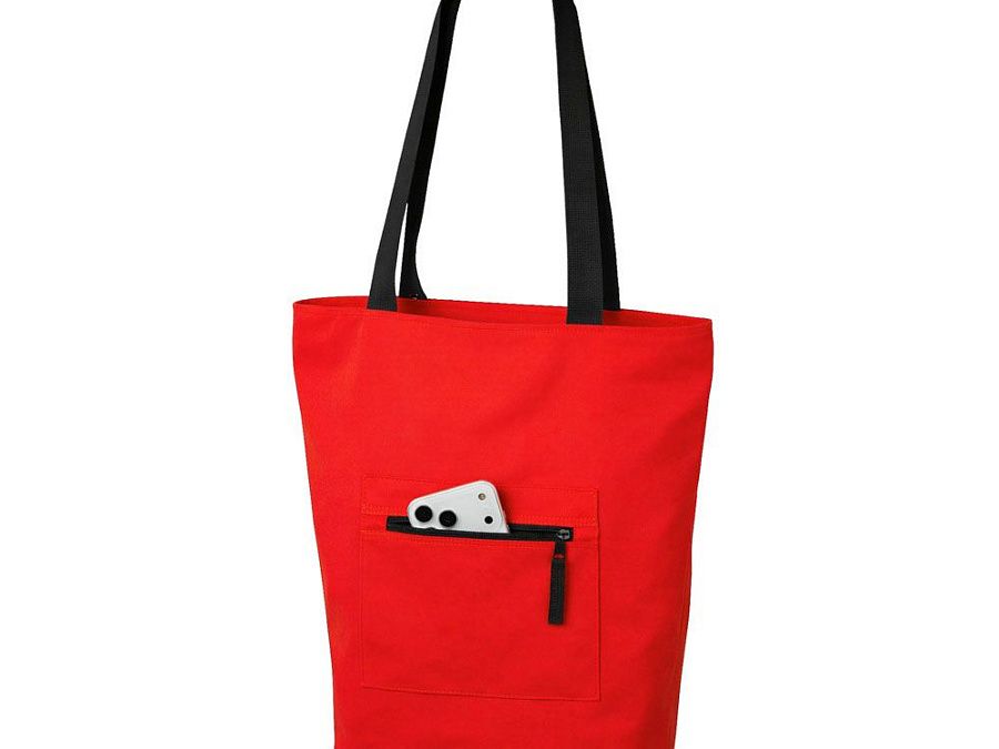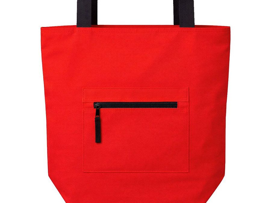 Преимущество этой сумки в наличии застежки молнии на основном отделении - ее содержимое остается закрытым. Донная складка увеличивает вместимость. Снаружи расположен карман на молнии. Парусиновые ручки в тон сумки.