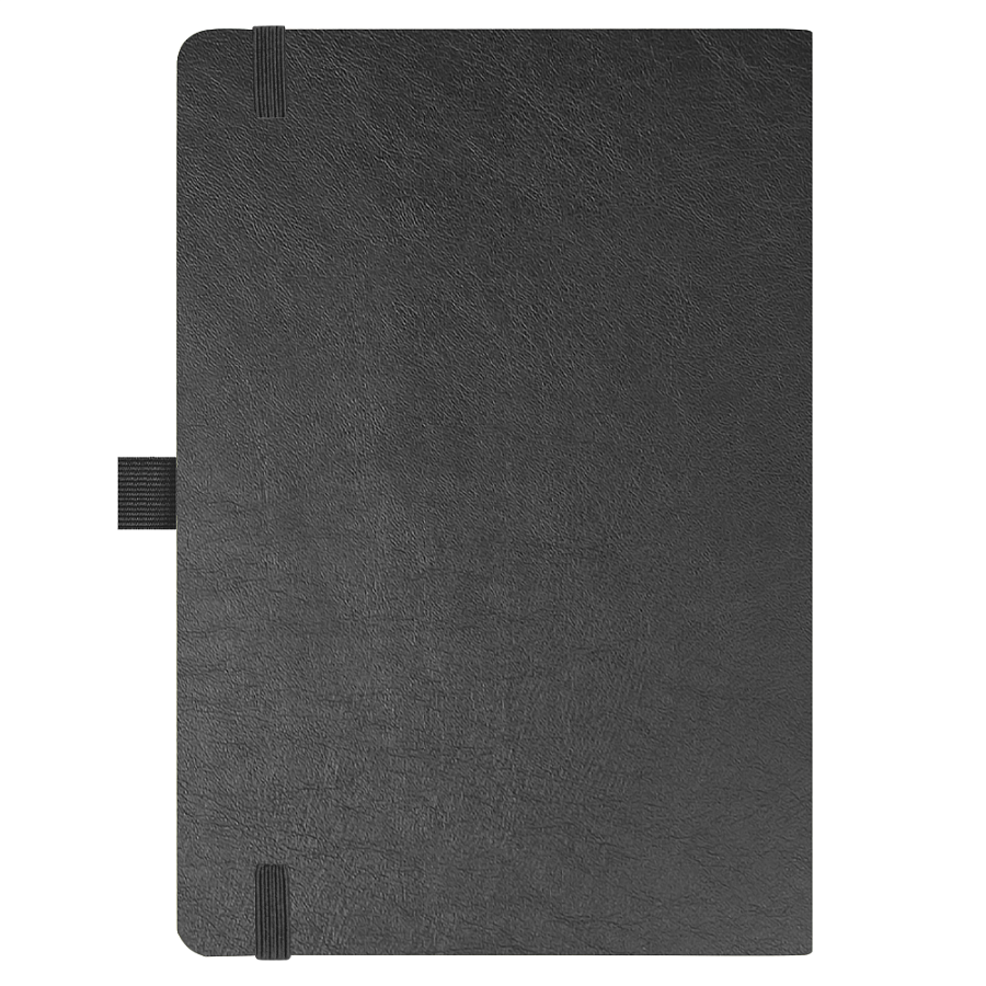 Блокнот Flexy Forest Urban Recycled Leather формата А5 — стильный недатированный аксессуар с гибкой обложкой из искусственной кожи. Черная поверхность обложки обладает мягким матовым финишем и легкой фактурой, напоминающей натуральную кожу с едва уловимыми волокнами.