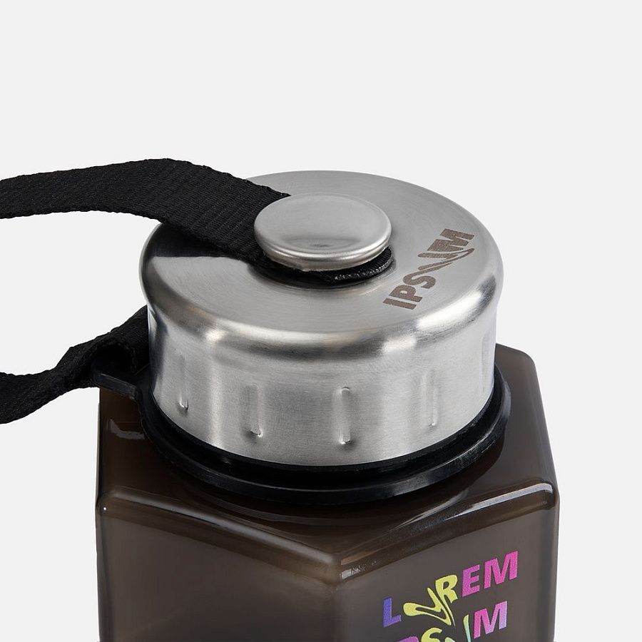 Узкая средняя часть обеспечивает удобный и надежный хват. Крышка с уплотнительным кольцом надежно защищает от протекания. Прочный ремешок фиксирует крышку, не давая ей потеряться. Полупрозрачный корпус выполнен из качественного пищевого пластика, который полностью безопасен для здоровья.