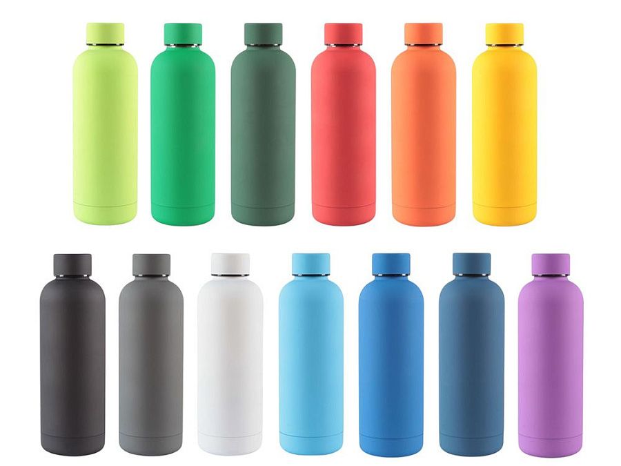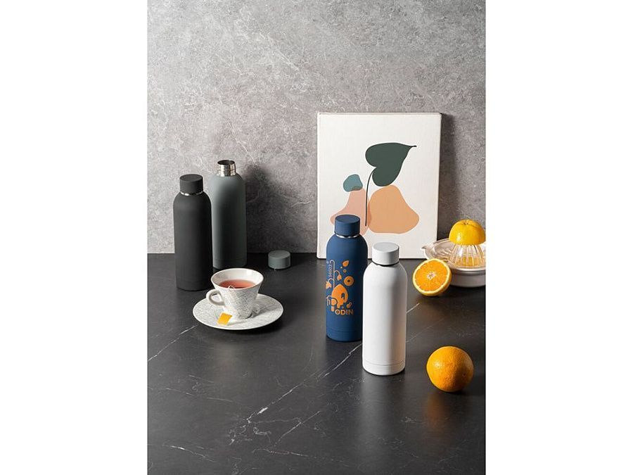 Термобутылка из нержавеющей стали с soft-touch покрытием, двойной корпус с вакуумной изоляцией и вместимостью до 550 мл.
