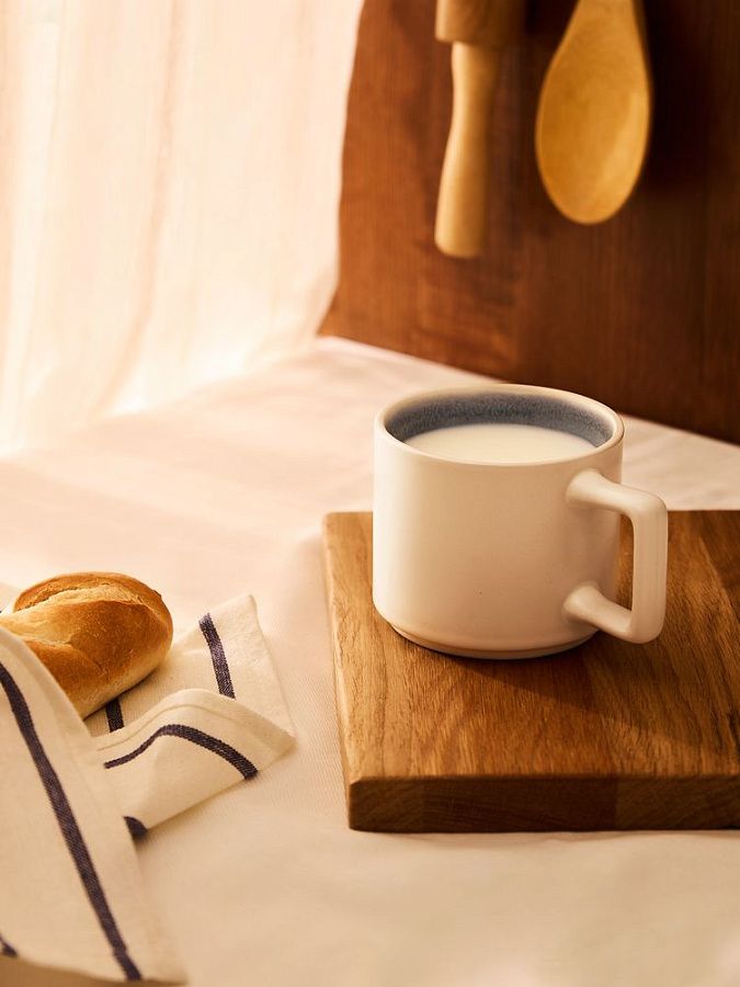 Внутренняя поверхность кружки Mornington покрыта реактивной глазурью — особым видом керамического покрытия, компоненты которого вступают в химическую реакцию во время обжига при температуре 1200°C и выше. Из-за непредсказуемого взаимодействия компонентов создаются уникальные переливы, узоры и текстуры, поэтому в партии невозможно найти два абсолютно одинаковых изделия.