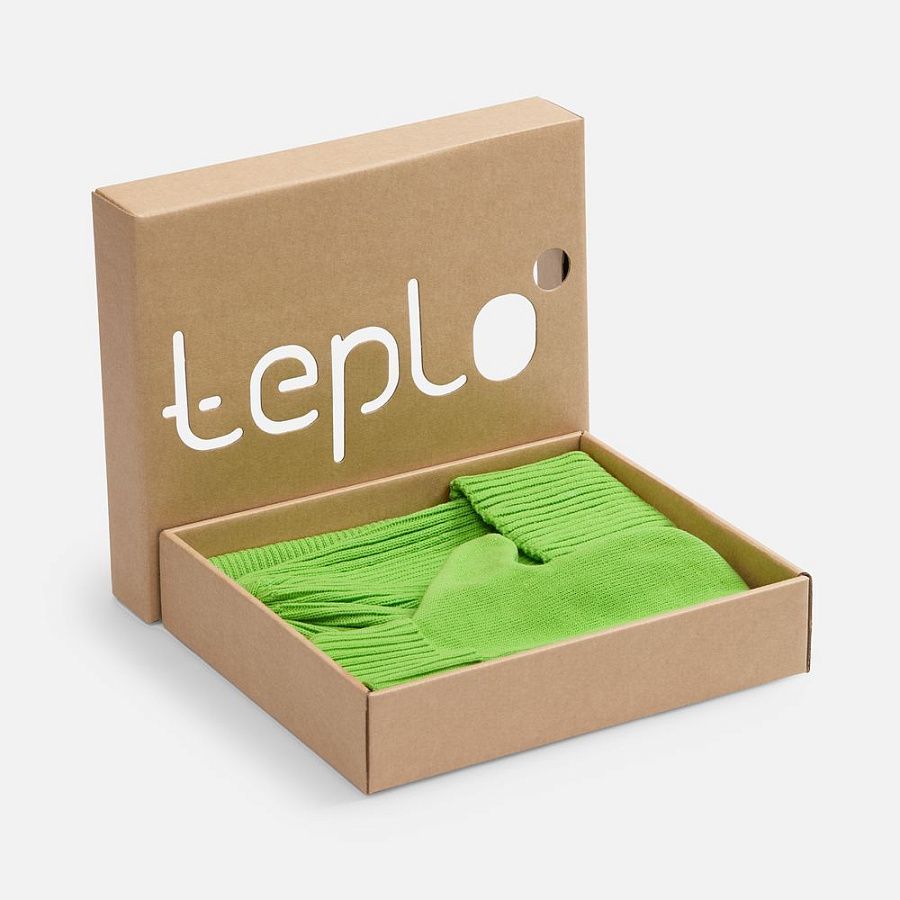 В набор входят удобный шарф с технологичным отверстием для быстрого завязывания, шапка с двойным отворотом и теплые двухслойные варежки с широкой манжетой. Все изделия связаны из акриловой пряжи, отличаются практичностью и элегантной простотой.