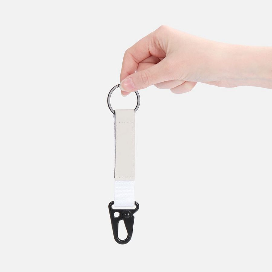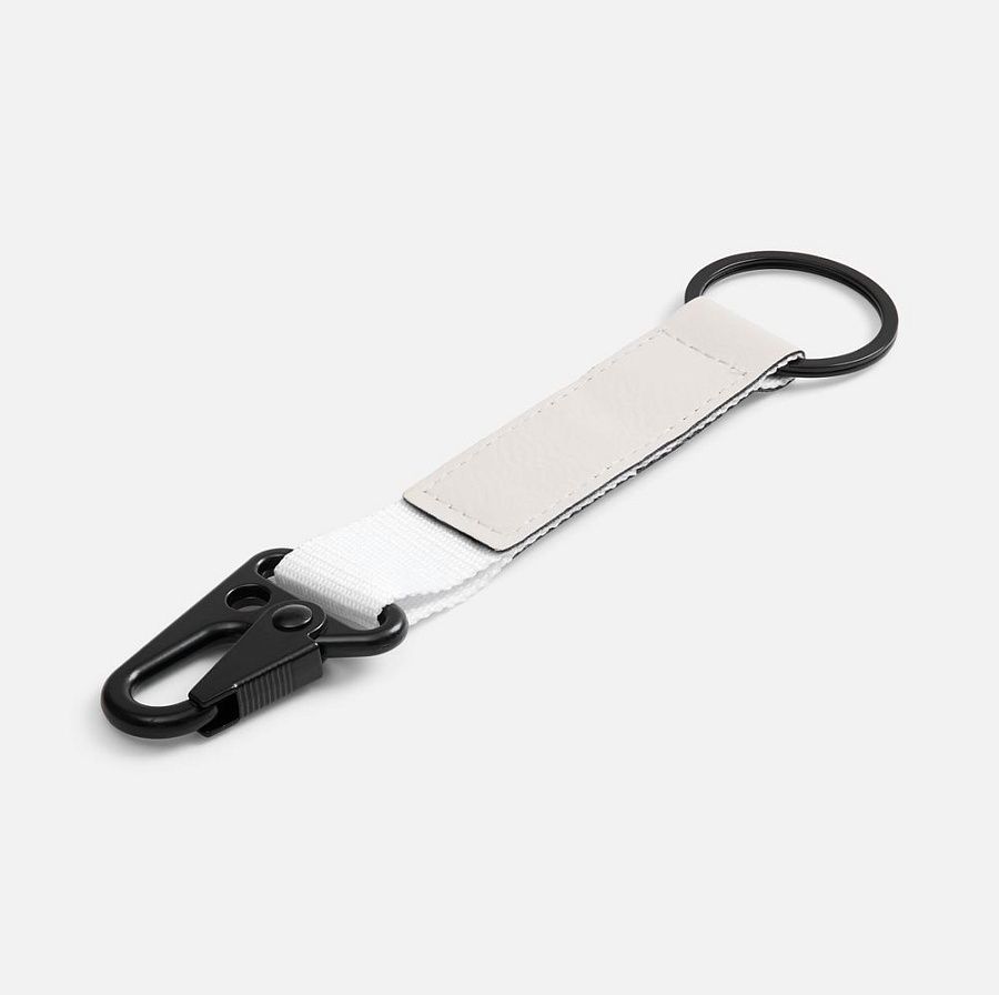 Брелок из ткани и искусственной кожи с кольцом и карабином. Удобная конструкция позволит быстро пристегнуть или отстегнуть ключи и другие аксессуары, а декоративная накладка станет прекрасным местом для нанесения логотипа.