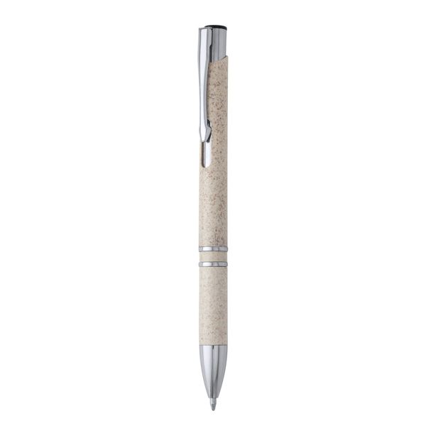 Кнопочная ручка из пшеничного волокна и АБС с серебряными деталями. Джамбо-заправка синими чернилами. Пшеничное волокно и ABS.