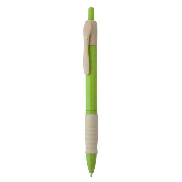 Кнопочная ручка из пшеничного волокна и АБС с мягким захватом. Синие чернила. Кнопка из пшеничного волокна и АБС-пластика.