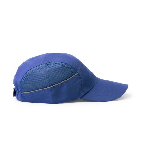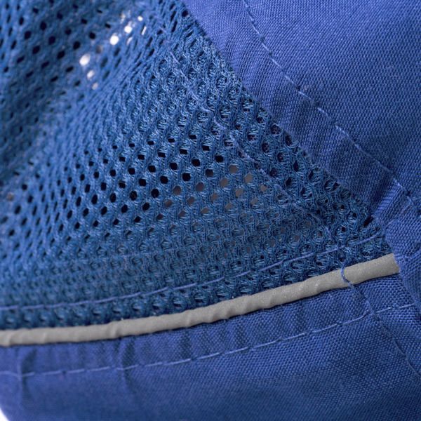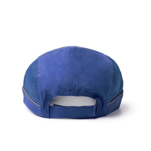 Легкая эргономичная спортивная кепка из микрофибры RPET. Сетчатая ткань по бокам для вентиляции и лента от пота, специально разработанная для спорта. Задняя часть оснащена регулировкой на липучке и светоотражающей лентой по бокам.