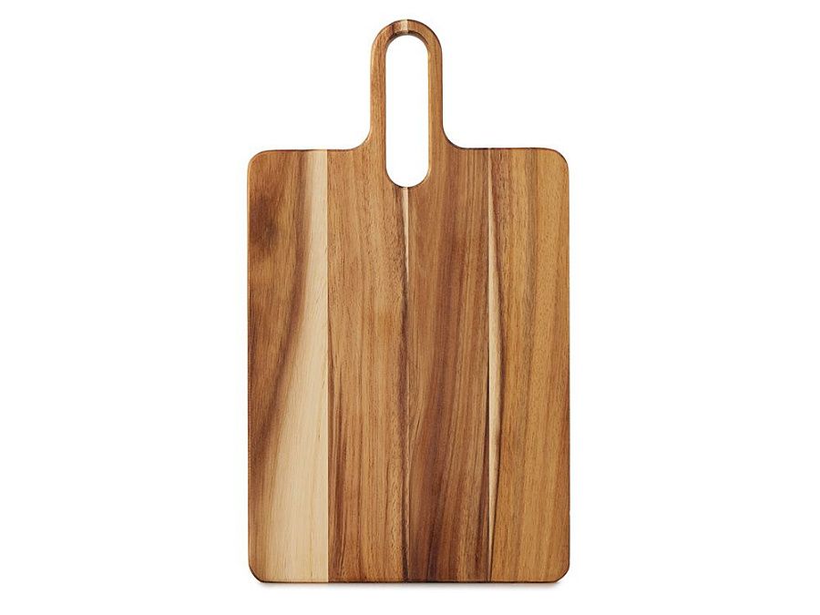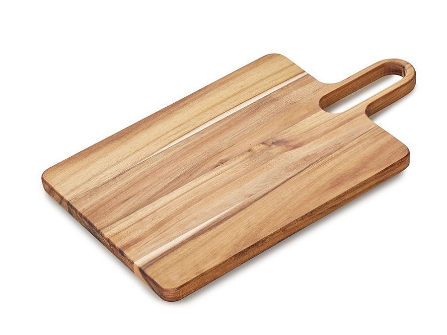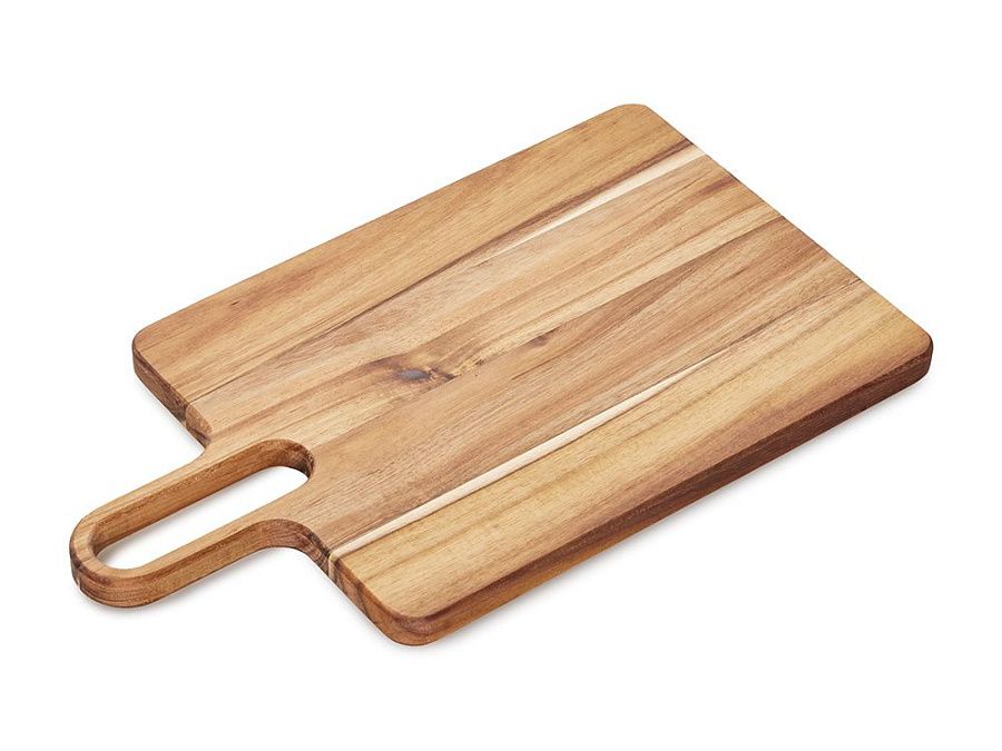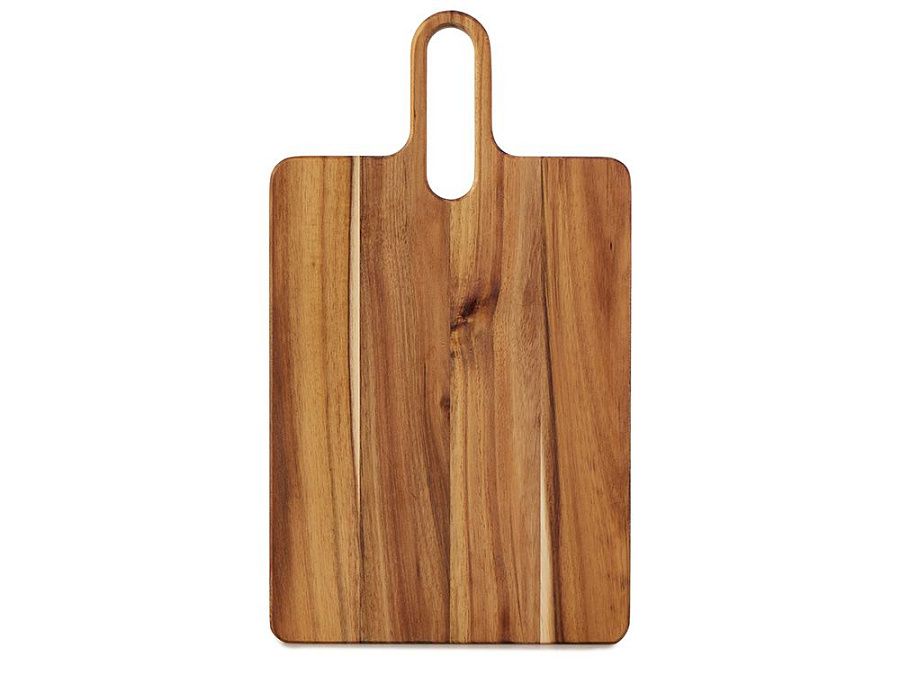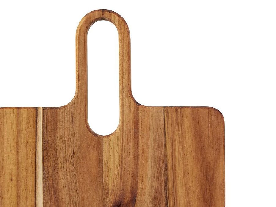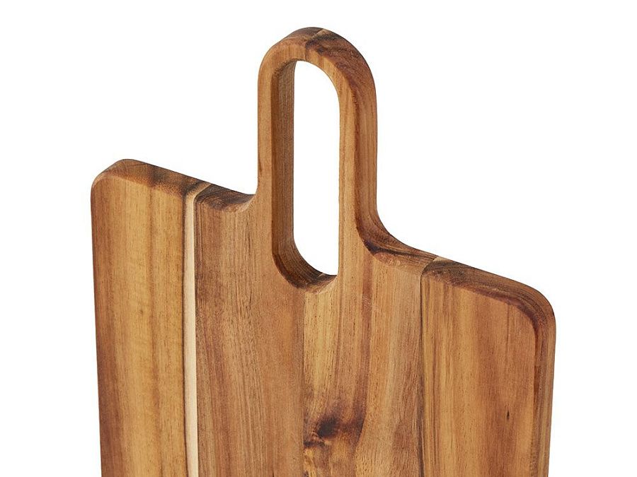 Разделочная доска «Вэй» выполнена из массива акации — прочного и влагостойкого материала, который устойчив к появлению царапин и деформации. Благодаря плотной структуре древесина не впитывает запахи и соки продуктов, что делает доску гигиеничной и безопасной в использовании. Благодаря удлиненной ручке доска удобно лежит в руке, а большое отверстие позволяет с легкостью повесить доску на крючок для хранения.