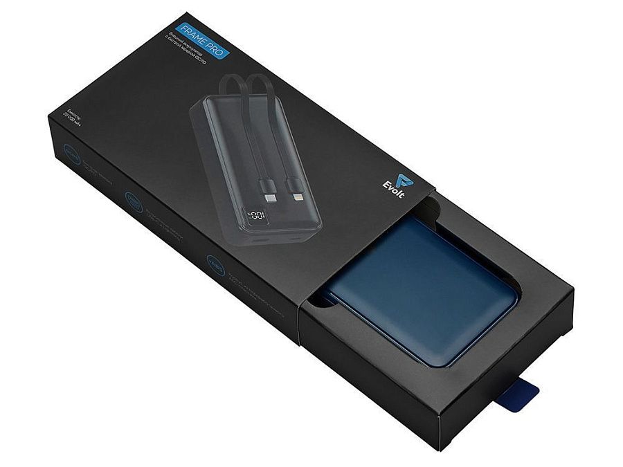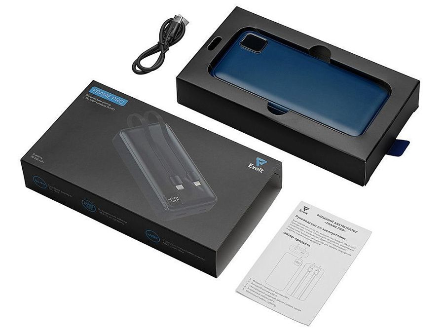 Удобный внешний аккумулятор с функцией быстрой зарядки и встроенными кабелями USB-C (симметричный разъём USB тип С) и Lightning (разъём в ранних версиях iPhone) — ваш надежный партнер в путешествиях, на встречах и в повседневных задачах. Цифровой дисплей в реальном времени показывает точный остаток заряда и статус быстрой зарядки, а встроенные кабели и несколько разъемов позволяют заряжать до 4 устройств. Прочный корпус из переработанного АБС-пластика и емкость 20000 мАч обеспечивают зарядом все ваши устройства на долгий срок. Идеальный выбор для тех, кто ценит комфорт и функциональность в одном устройстве. Продуманная упаковка: для открытия просто потяните за язычок, и появится гаджет с нанесением.