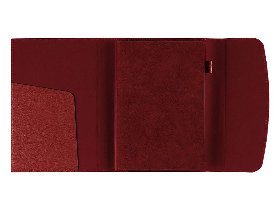Ежедневник-портфолио имеет карман под визитки или бумаги, петельку для ручки.