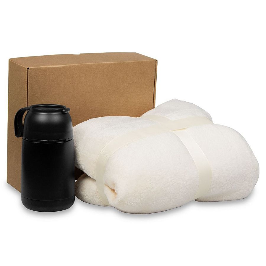 Набор подарочный Solution Duo (плед, термокружка), бежевый/белый