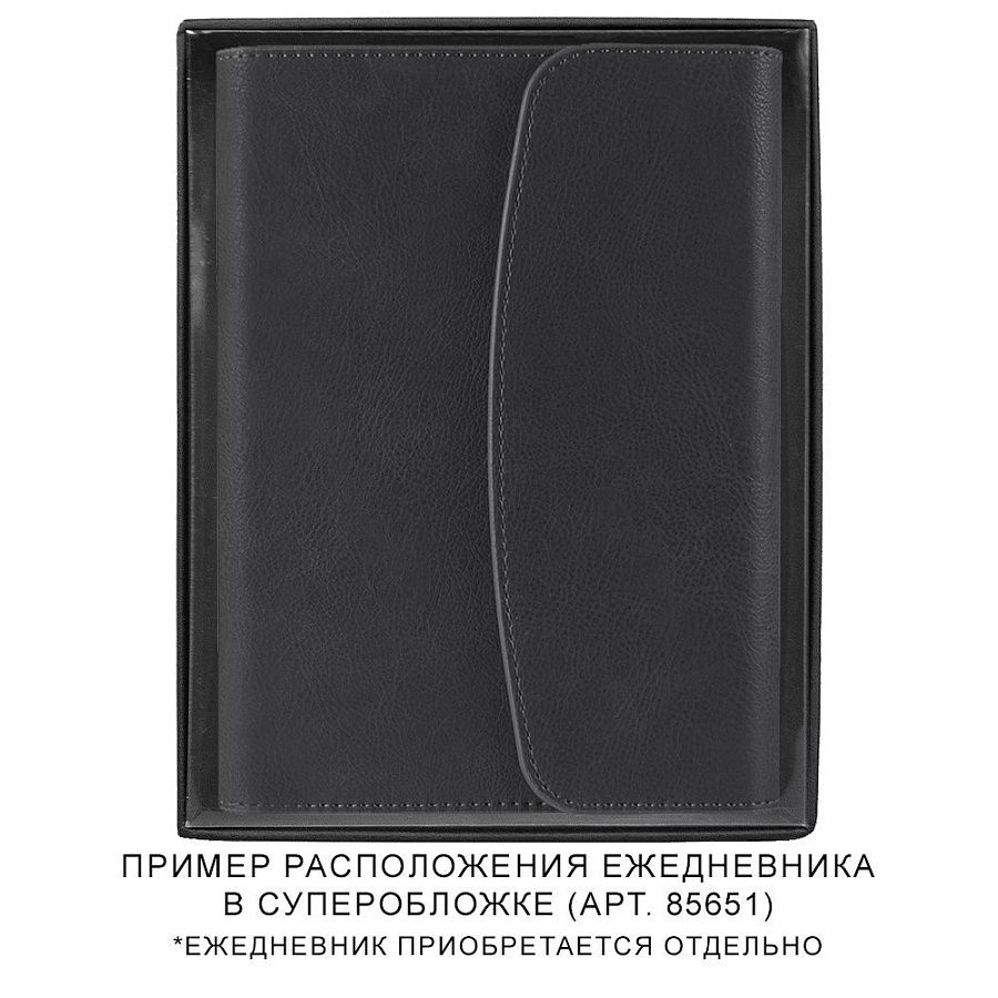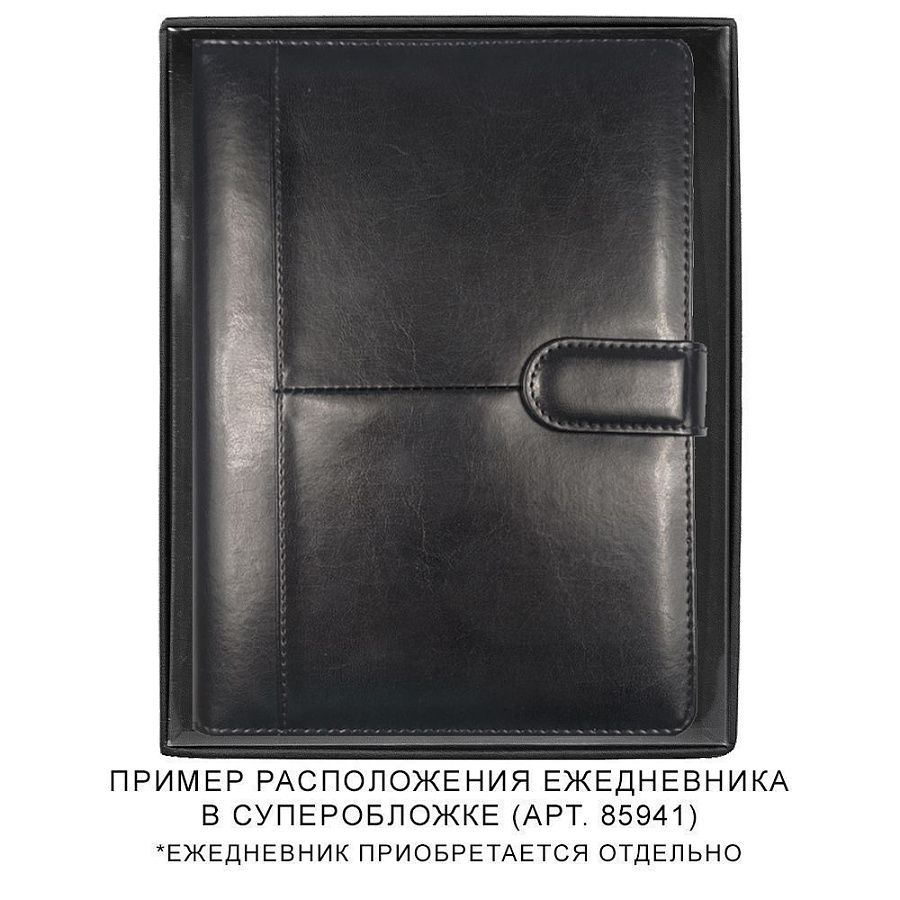 Подарочная коробка черного цвета пластиковой прозрачной крышкой. Подходит для ежедневников в суперобложке длиной до 22,5 см.