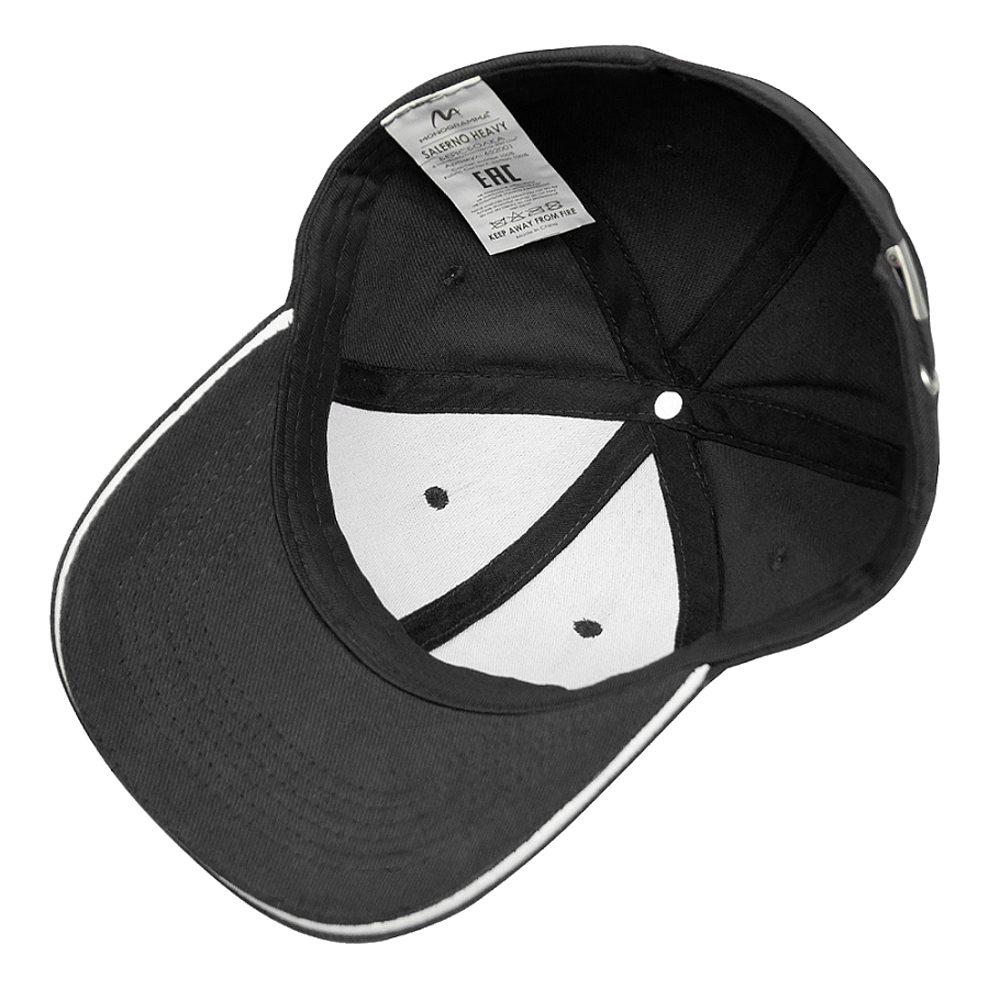 Кепка 5- панельная Salerno Heavy 350,  c белым сендвичем, черная