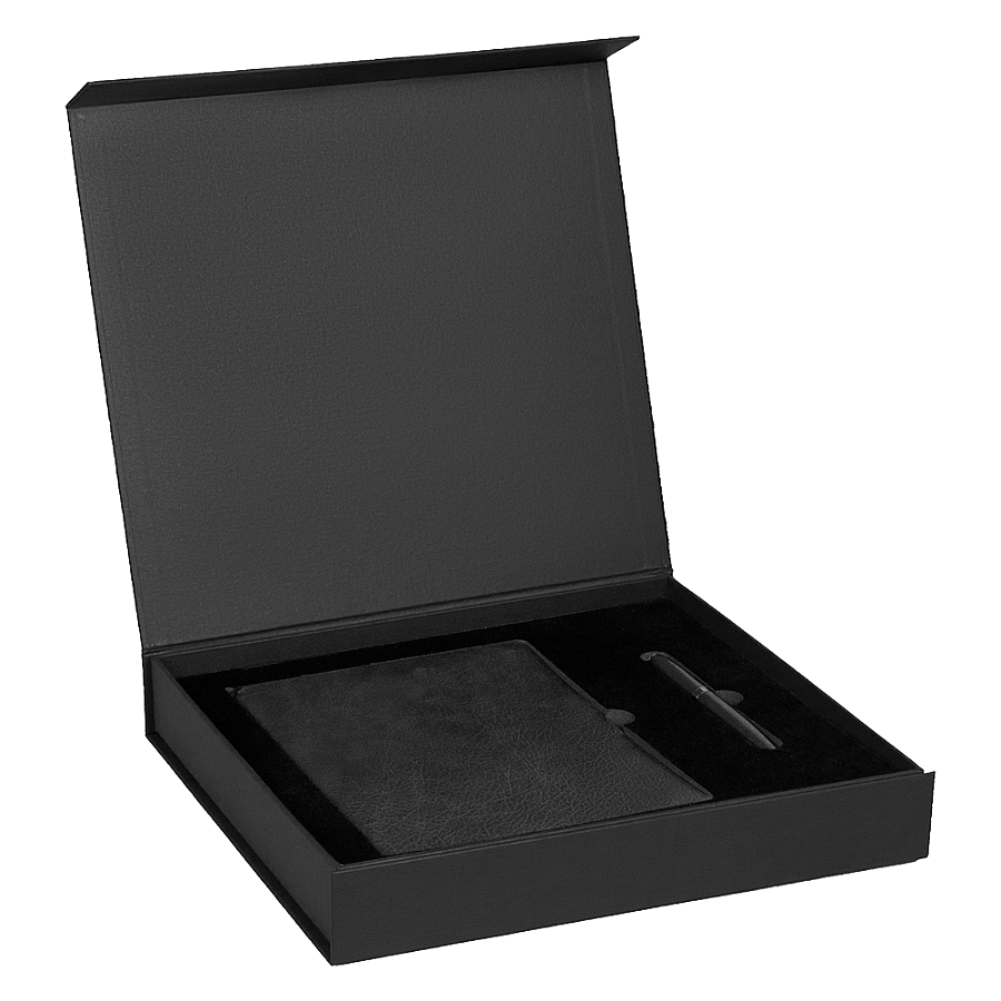 Компактная подарочная коробка с магнитным клапаном и индивидуальной вырубкой подчеркивает премиальность комплекта, а два цветовых решения — глубокий черный и интеллигентный синий — позволяют выбрать настроение подарка: от классической строгости до современной выразительности.