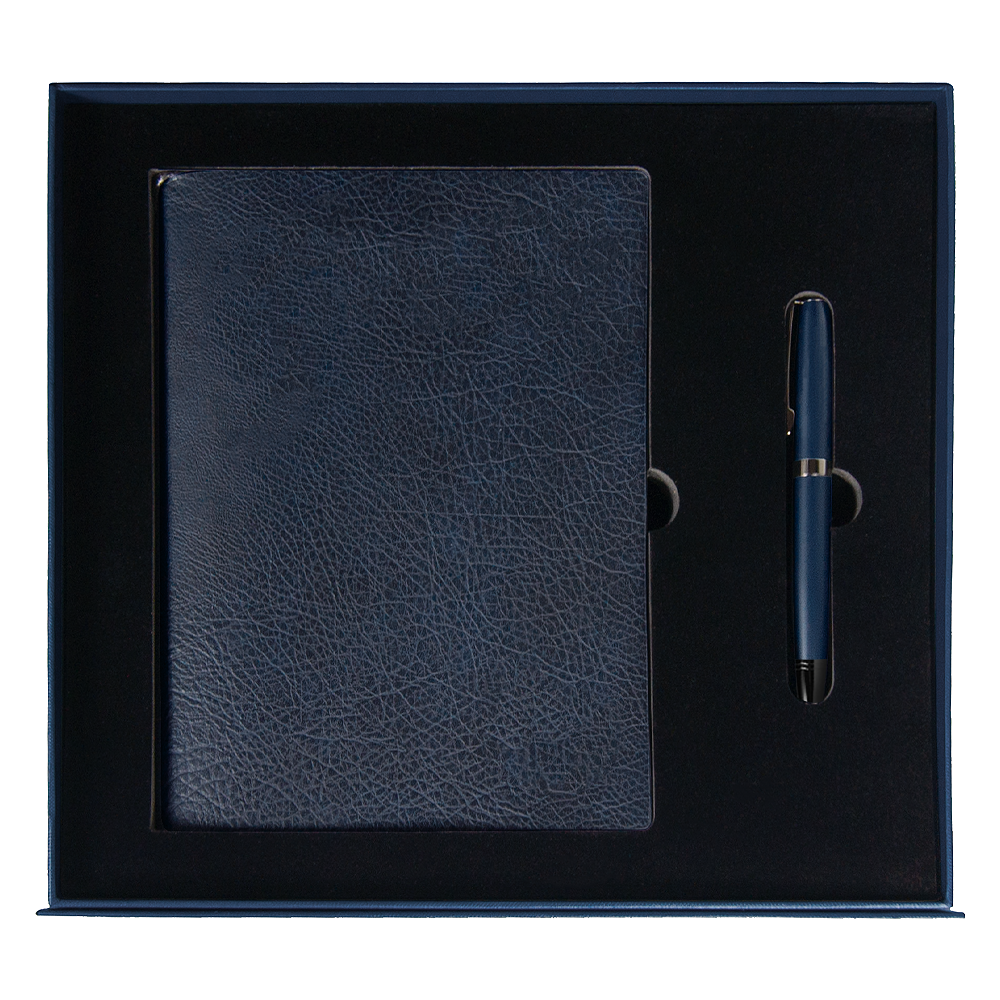 Компактная подарочная коробка с магнитным клапаном и индивидуальной вырубкой подчеркивает премиальность комплекта, а два цветовых решения — глубокий черный и интеллигентный синий — позволяют выбрать настроение подарка: от классической строгости до современной выразительности.