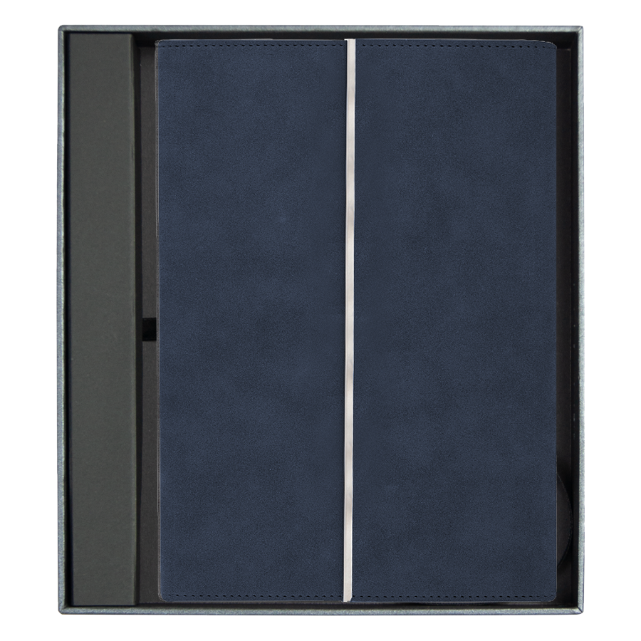 В комплекте гибкий недатированный ежедневник в обложке Nuba, имеющий прокрашенный срез и металлический шильд. По желанию заказчика ежедневник-портфолио может комплектоваться любым недатированным ежедневником из нашего ассортимента.