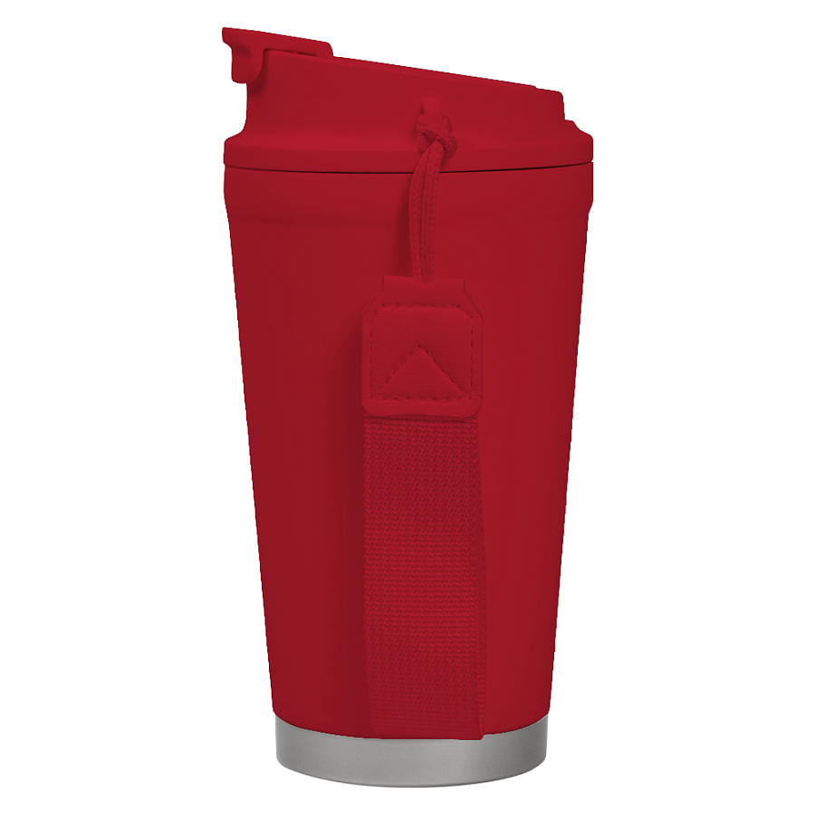 Металлическая термокружка объёмом 410 мл с матовым покрытием и контрастным металлическим основанием. Оснащена герметичной крышкой с откидным клапаном и удобным ремешком для переноски. Поддерживает температуру напитков и подходит для использования в дороге, на работе и в путешествиях.