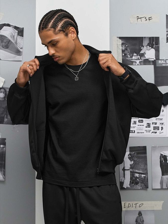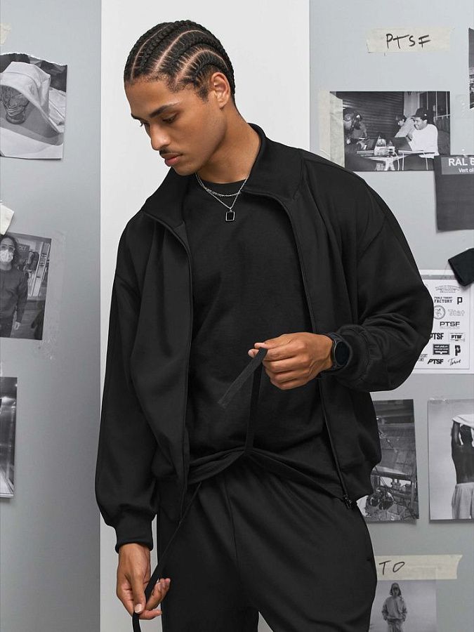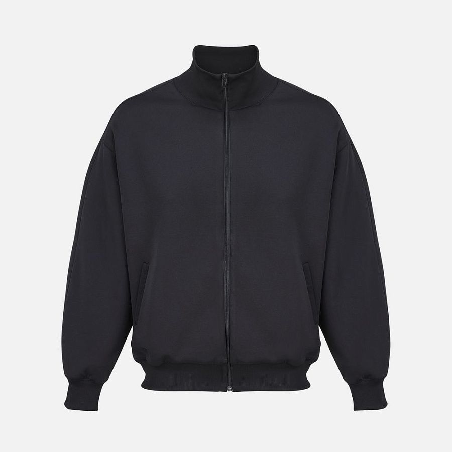 Спортивная куртка со свободной посадкой. Выполнена из высокотехнологичного трехслойного материала, известного как ткань скуба или трикотажный неопрен, в самом центре которого спрятаны объемные нити текстурированного полиэстера.