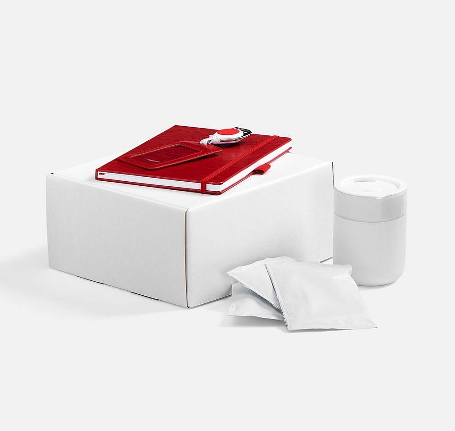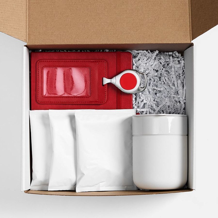 - Подарочные наборы с термокружкой красного цвета